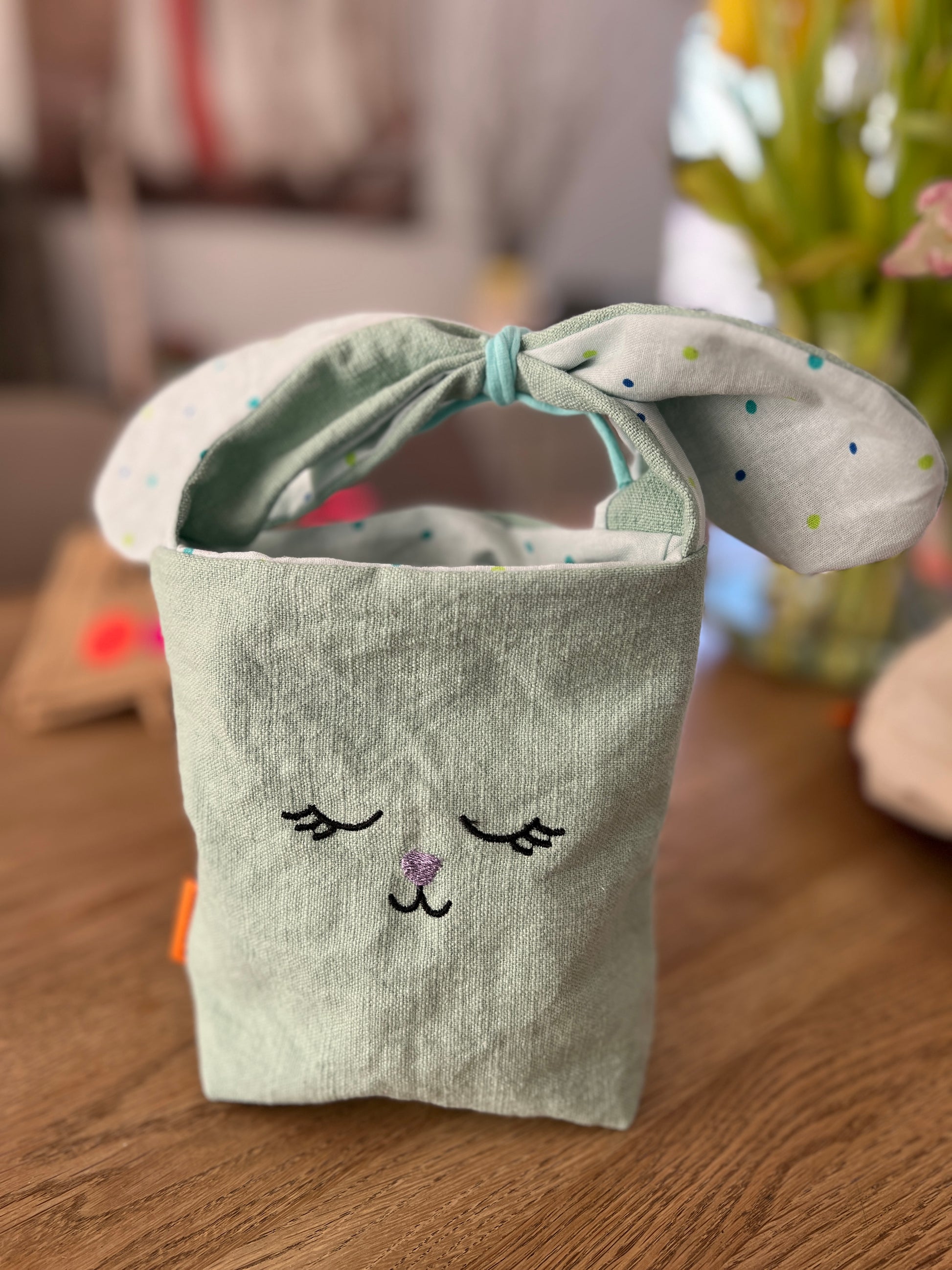 Süßer Hasenkorb mit langen Ohren.