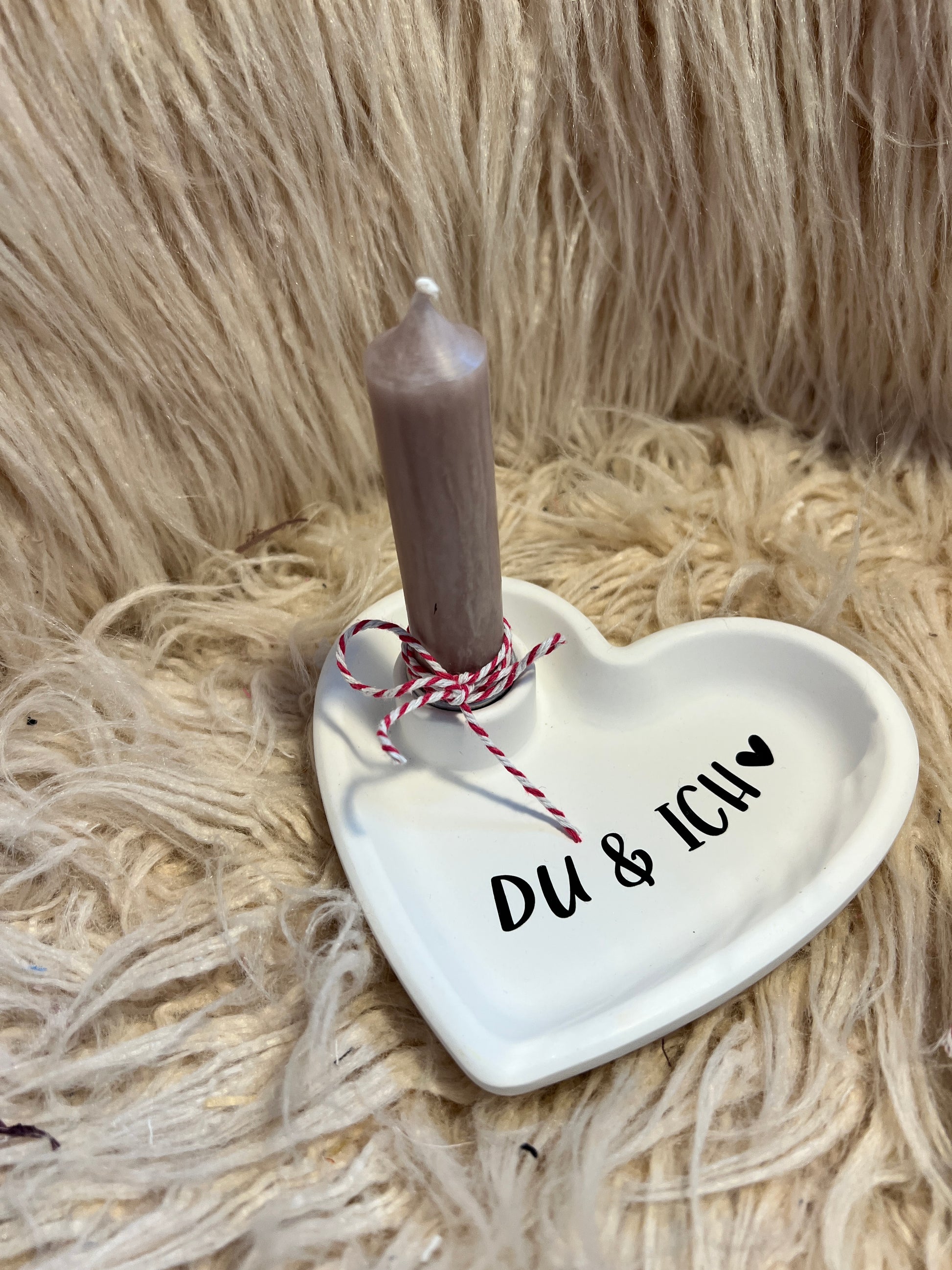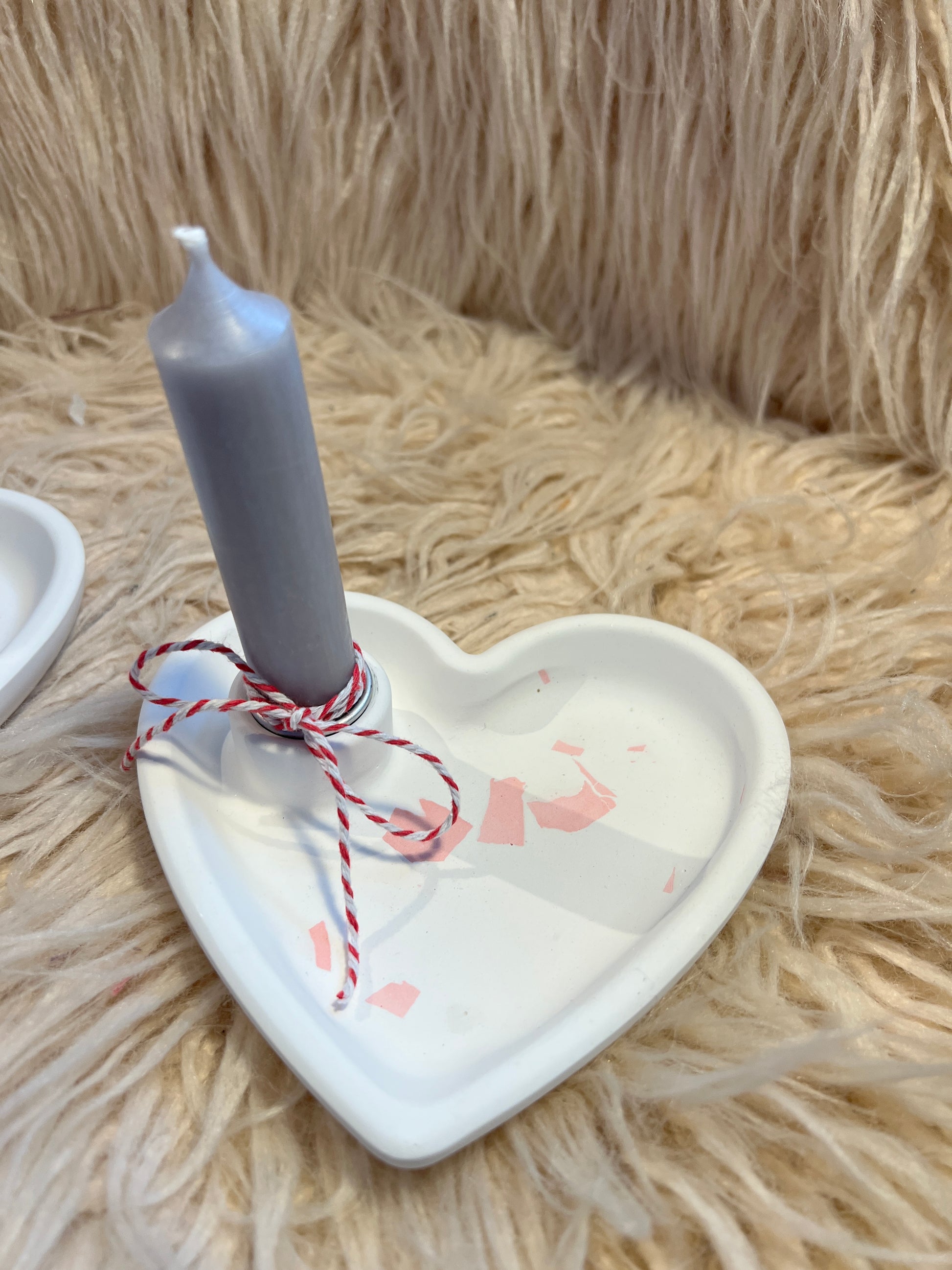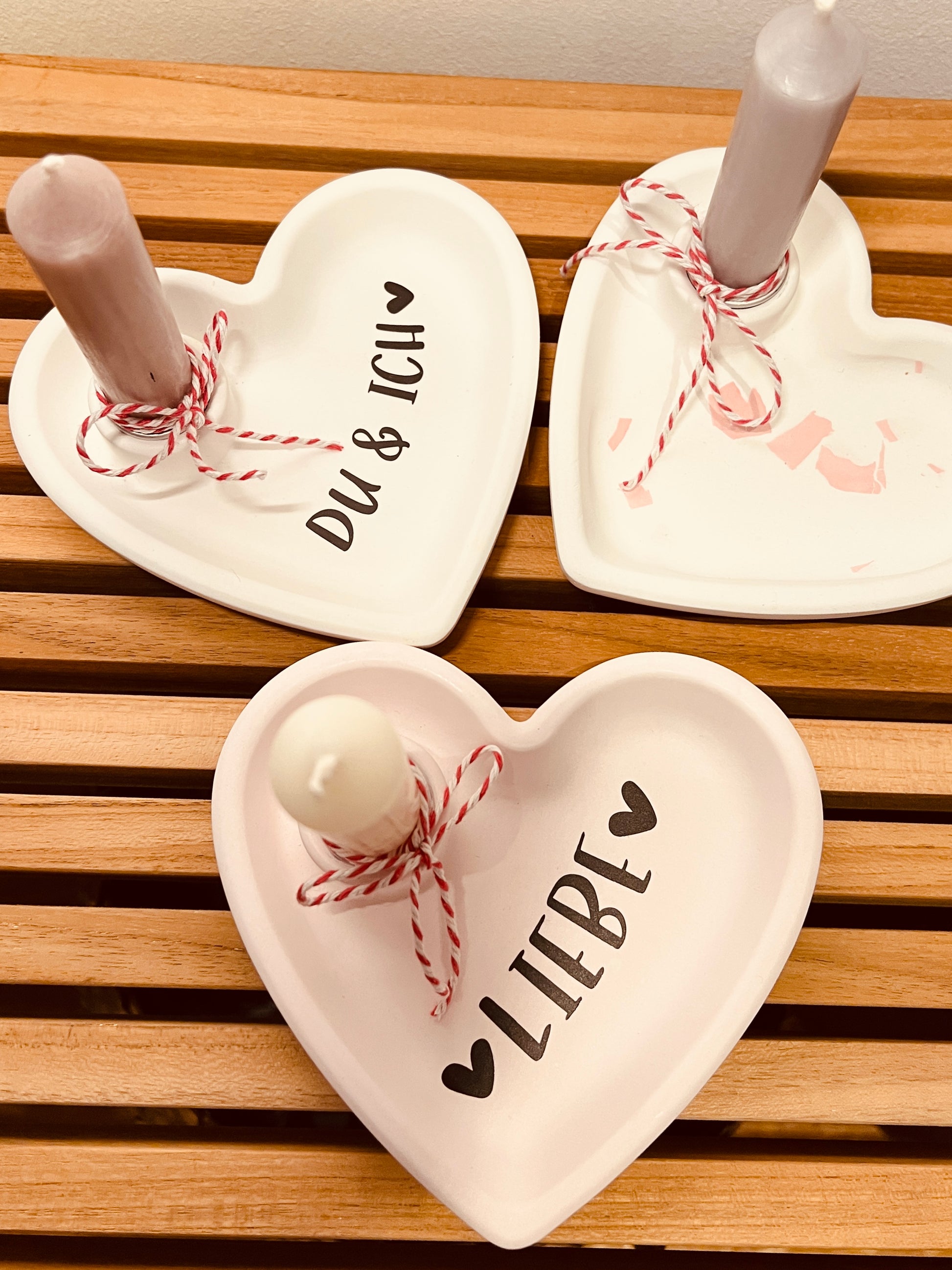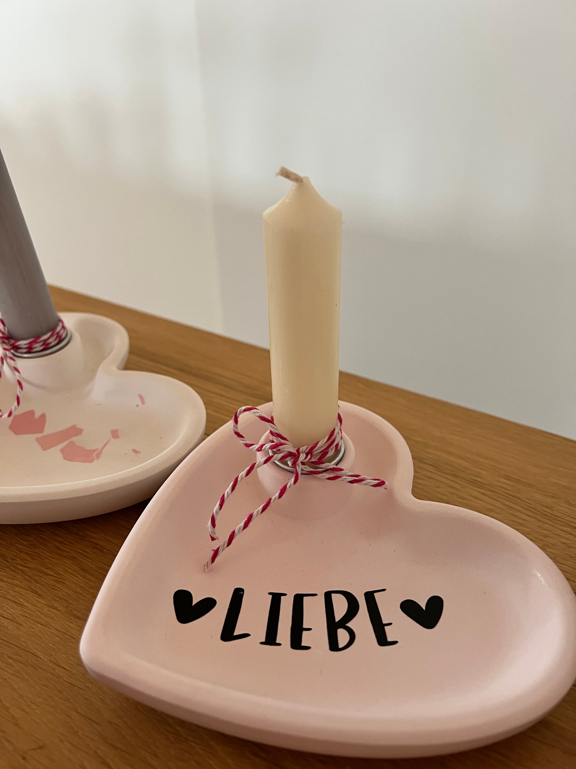 Ein wunderschöner Kerzenhalter in Herzform für Stabkerzen. Der Kerzenhalter kann zu wunderbar zu jedem Anlass individuell dekoriert werden.