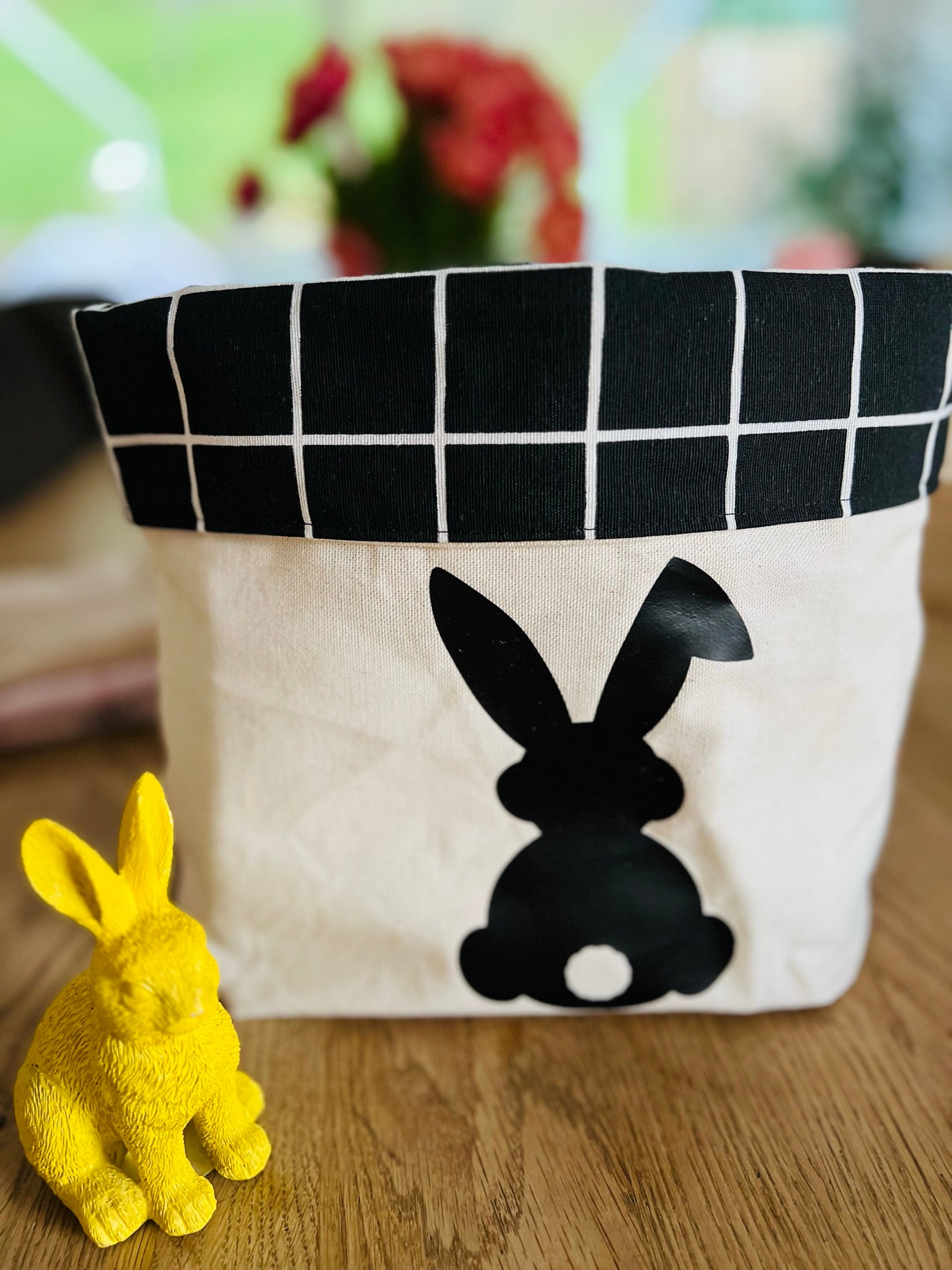 Außen mit aufgedrucktem Hase - innen im schwarz-weiß Karo Muster