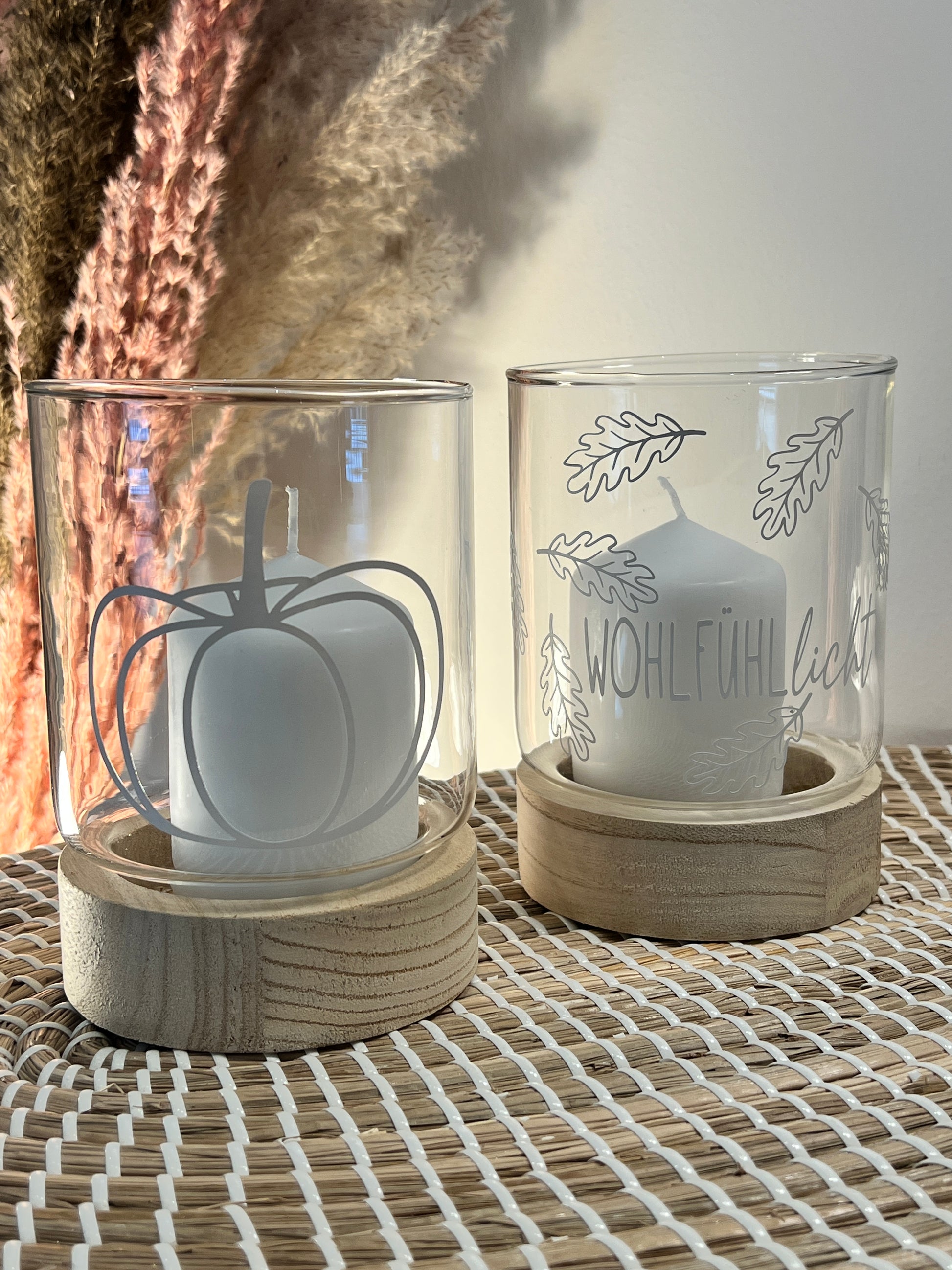 Dekoratives Windlicht in verschiedenen herbstlichen Designs inkl. Kerze.